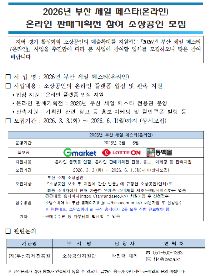 2026년 부산 세일 페스타(온라인) 참여 소상공인 모집 공고문.hwp